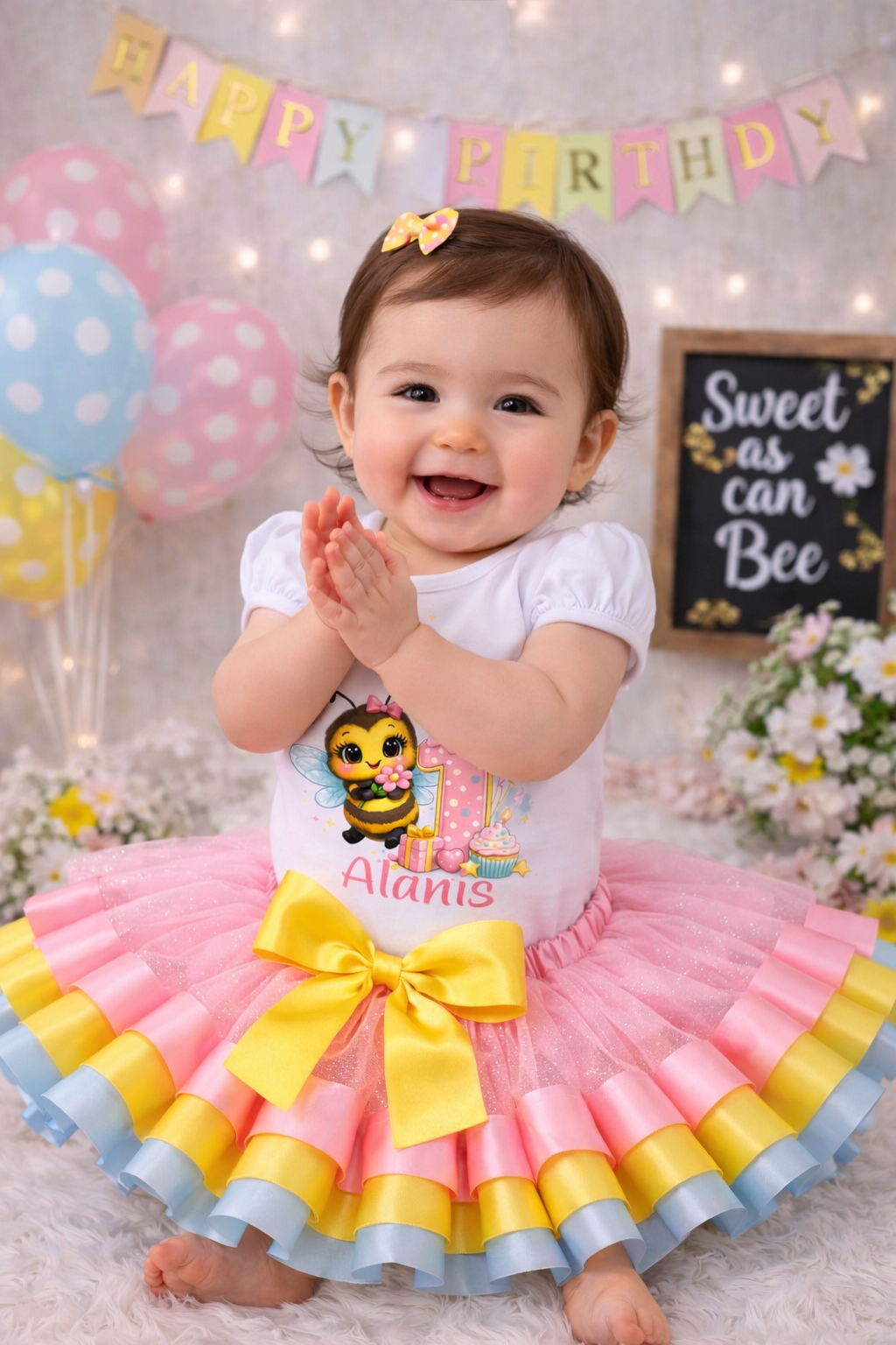 Personalized Bee 1st Birthday Tutu Outfit – Sweet as Can Bee Girl Birthday Set